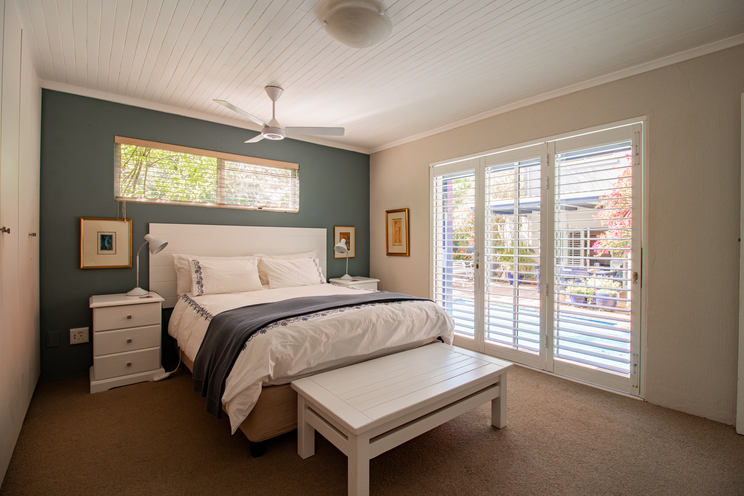 As you explore the property further, a hallway leads to a generously sized bedroom and a conveniently located study, accompanied by a well-appointed guest bathroom. Continuing down the corridor, you'll encounter the main bedroom, complete with an en suite bathroom and a cozy pajama lounge. The main bedroom opens up to the courtyard through charming American shutters, providing a tranquil and secluded escape.